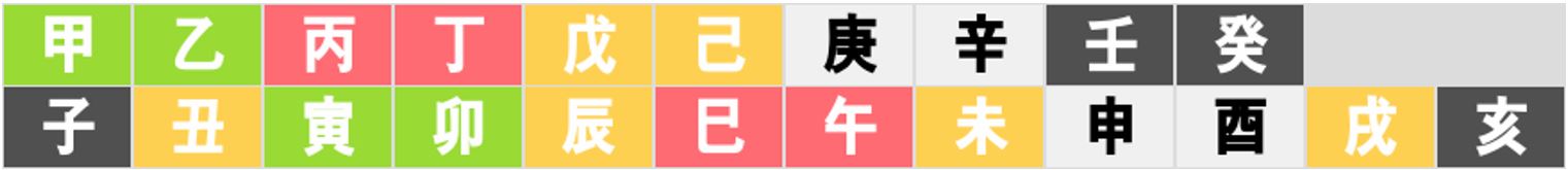 지지의 글자들은 이미 아시는 분들이 많을텐데, 동물과 연관이 되어 있습니다. 쥐(子), 소(丑), 호랑이(寅), 토끼(卯), 용(辰), 뱀(巳), 말(午), 양(未), 원숭이(申), 닭(酉), 개(戌), 돼지(亥) 입니다. 연주의 천간을 연간이라고 하고 연주의 지지를 연지라고 하는데, 이를테면 연지가 묘목이면 그 사람은 토끼띠가 되는 것입니다. 정묘년에 태어났든, 기묘년에 태어났든, 신묘년에 태어났든 연지가 묘목이면 그 사람은 토끼띠가 되는 것입니다. 아래 명식은 그럼 무슨띠일까요? 정유년(丁酉年)에 난 사람이기 때문에 닭띠가 되는 것입니다. 우리가 궁합을 보러 가게 되면 이 연지 혹은 일지의 글자들을 봐서 "원진살이 껴서 너네는 궁합이 안맞어!" 라고 하는 말을 듣게 되는 겁니다. 아래의 명식을 가진사람은 닭띠인데, 닭은 호랑이띠와 원진이기 때문에 호랑이년도에 태어난 사람과는 원진의 관계가 되는 것입니다. 혹은 아래의 명식은 일지가 술토(개)인데, 개의 원진은 뱀입니다. 그래서 일지가 사화(뱀)인 사람과 궁합을 보면 또 원진살이 있어서 안맞다고 할 수 있는 것입니다. 물론 궁합을 그렇게 단식판단으로 원진만 맞춰보고 궁합이 맞네 안맞네 하는 것은 아주 초보적인 수준의 풀이지만, 많은 분들이 어디가서 그런 말에 주눅이 들곤 합니다. 전혀 그러실 필요가 없습니다.