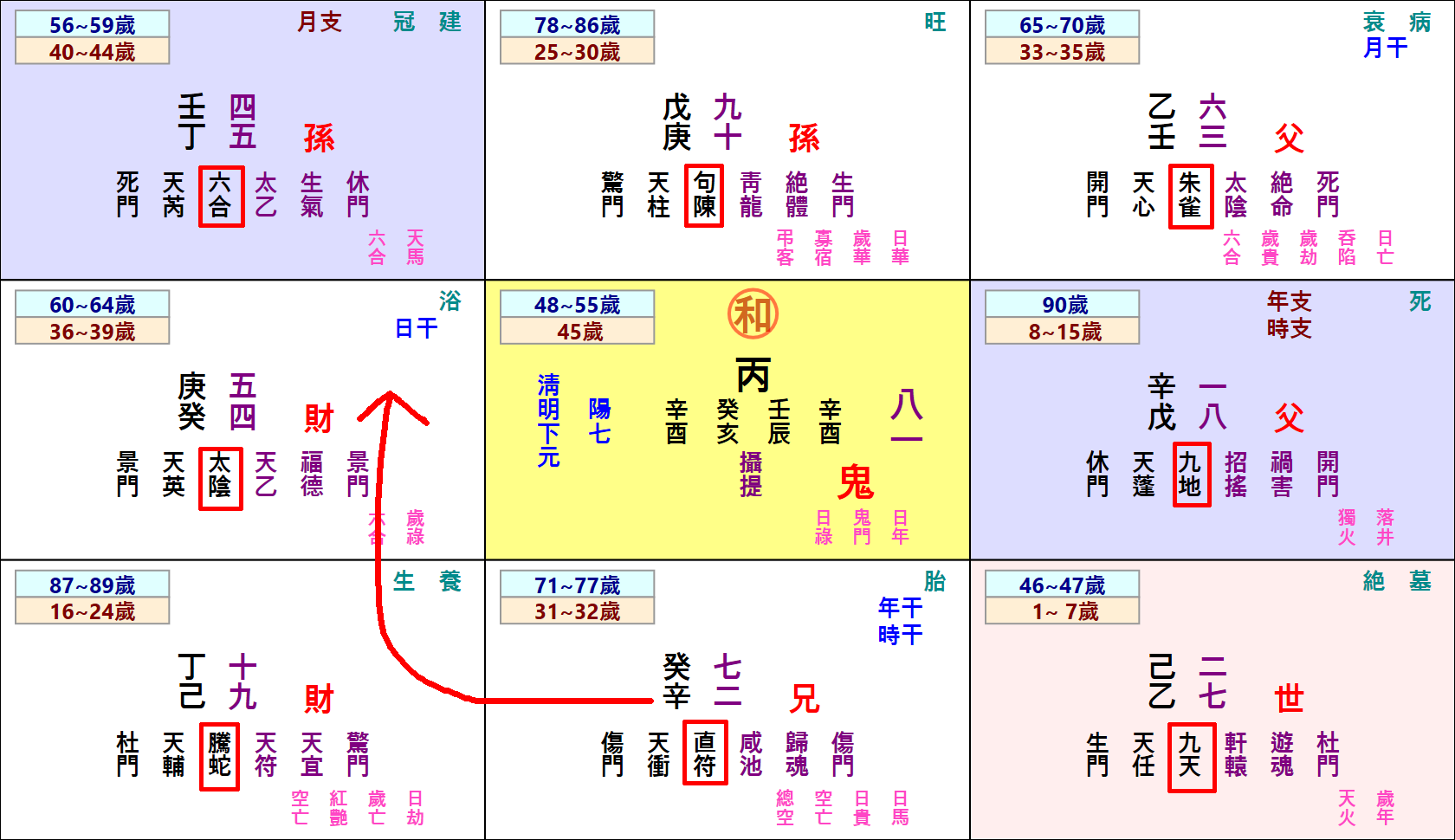 앞서 다룬 태을구성(太乙九星)은 천상(天象)으로 하늘의 기운을 나타냈다면, 팔문(八門)은 인상(人象)으로 인간의 기운을 나타내며, 팔괘(八卦)는 지상(地象)으로 땅의 기운을 나타냅니다. 그리고 직부팔장(直符八將)은 보좌(補佐)로서 구궁이 내포하고 있는 요소들을 길과 흉의 이중적으로 보조하는 역할을 한다고 보시면 됩니다.